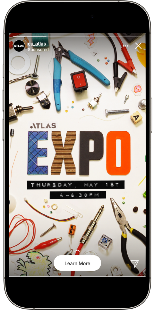 I created a number of social media graphics to promote ATLAS Expo on ATLAS' social media, boosting engagement in the event. Slides were created to advertise the event across campus.