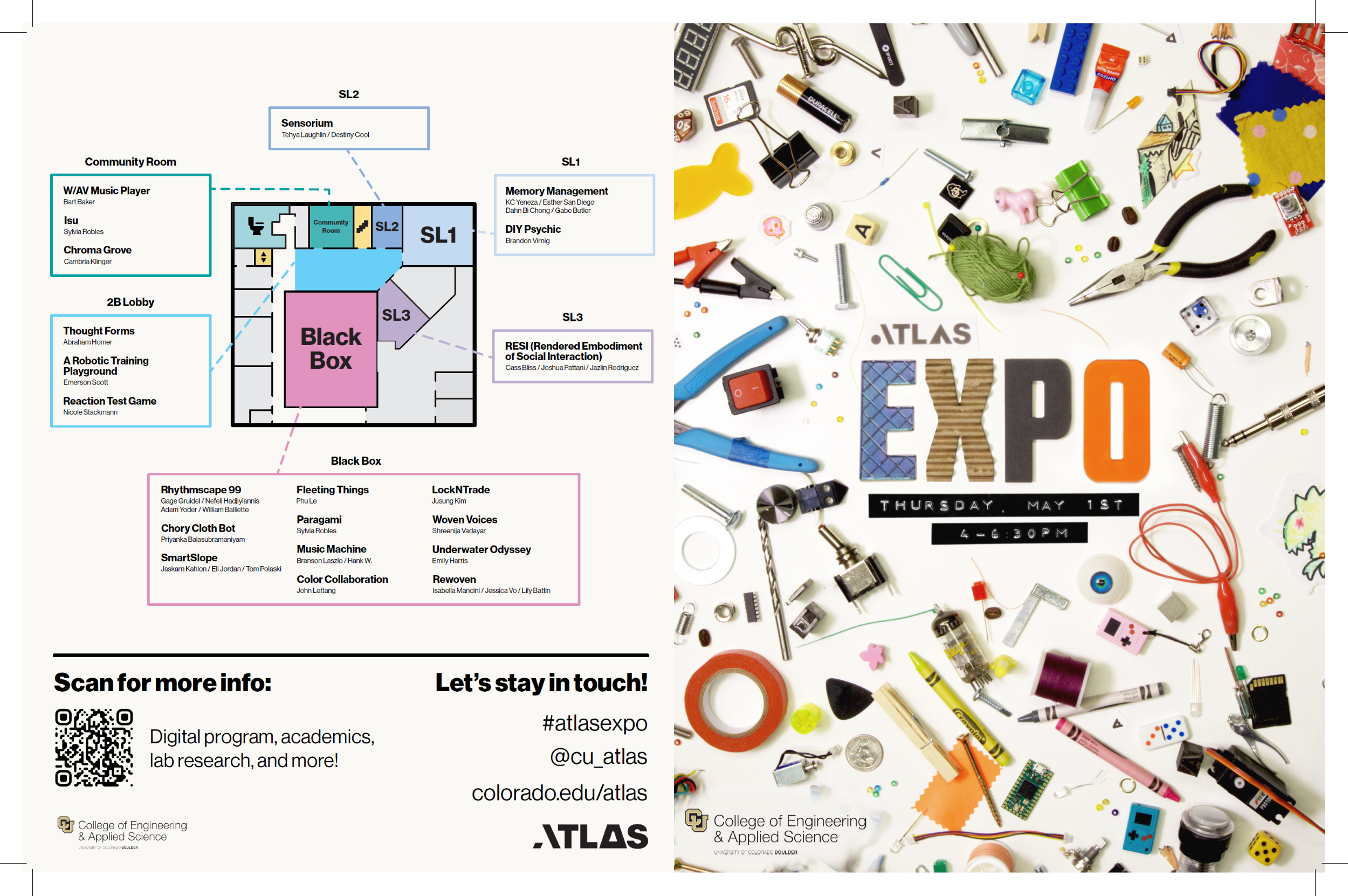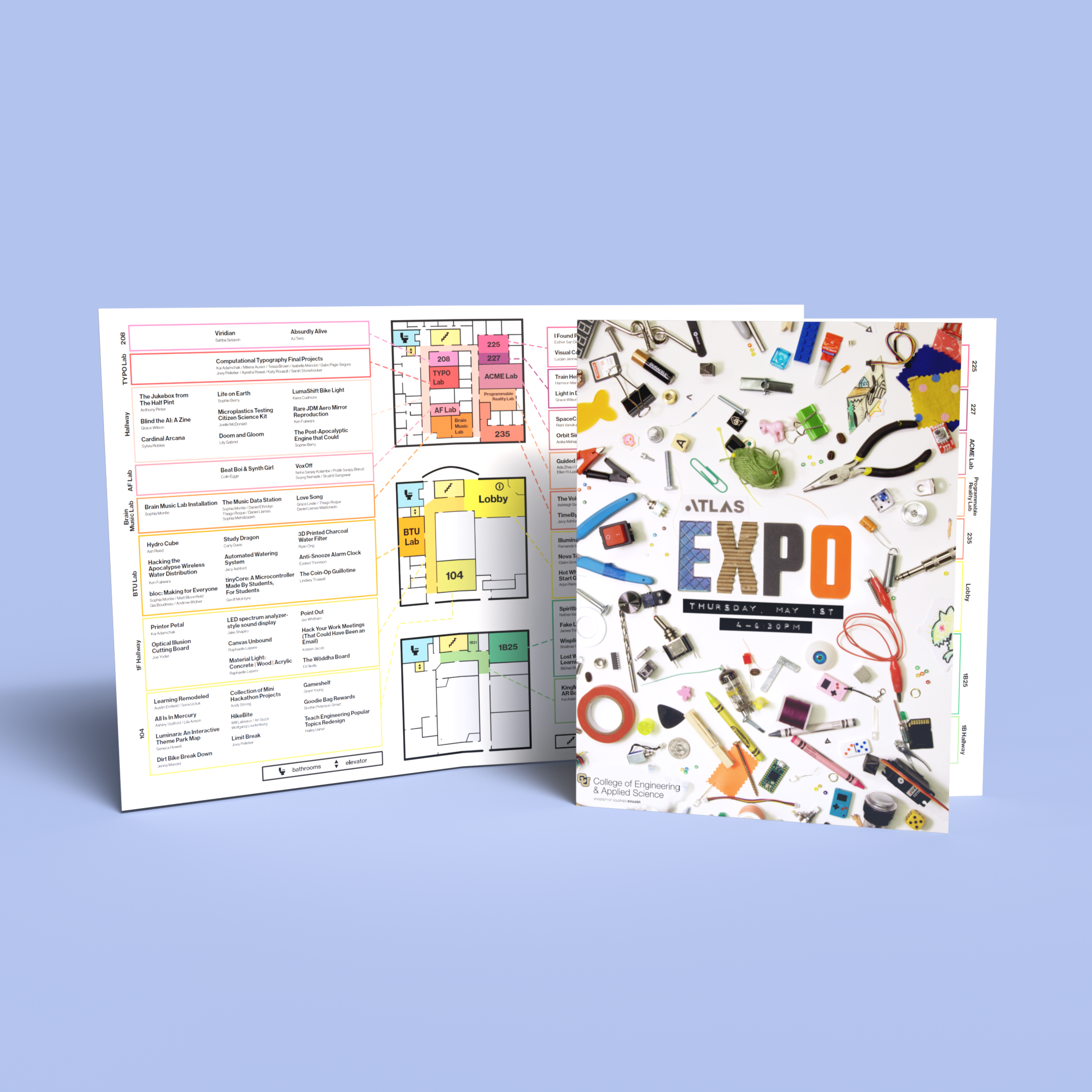 Programs were created to help visitors navigate through ATLAS Expo. We wanted to match the lively energy of ATLAS Expo, and utilized a vibrant color coding system to differentiate the wide variety of project rooms.