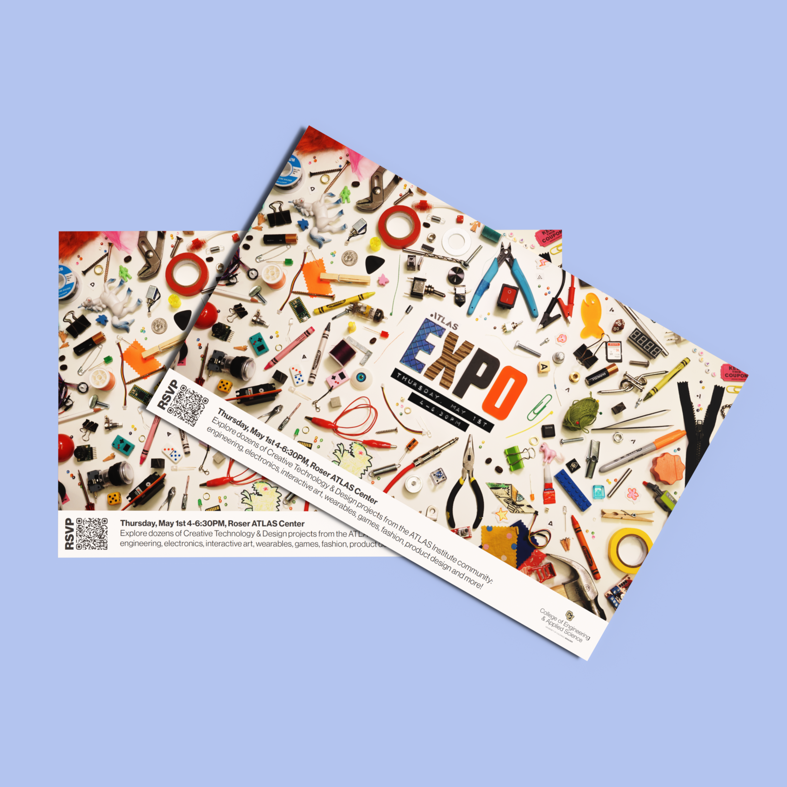 ATLAS Expo is a yearly event hosted by the ATLAS Institute that showcases student work and research to the public. The event sees hundreds of attendees, and represents a culmination of the years work for the institution. I was tasked with creating a vibrant, unique marketing campaign to advertise the event to Boulder residents. I worked closely with designer Danny Rankin to bring this vision to life.